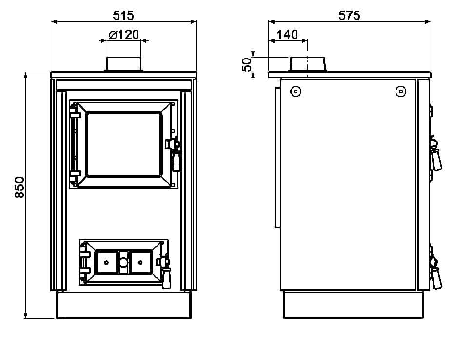 - Rozmerné ohnisko pre drevo do 350 mm