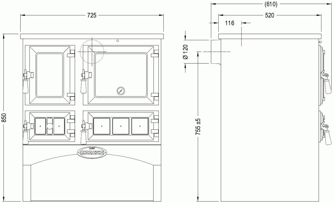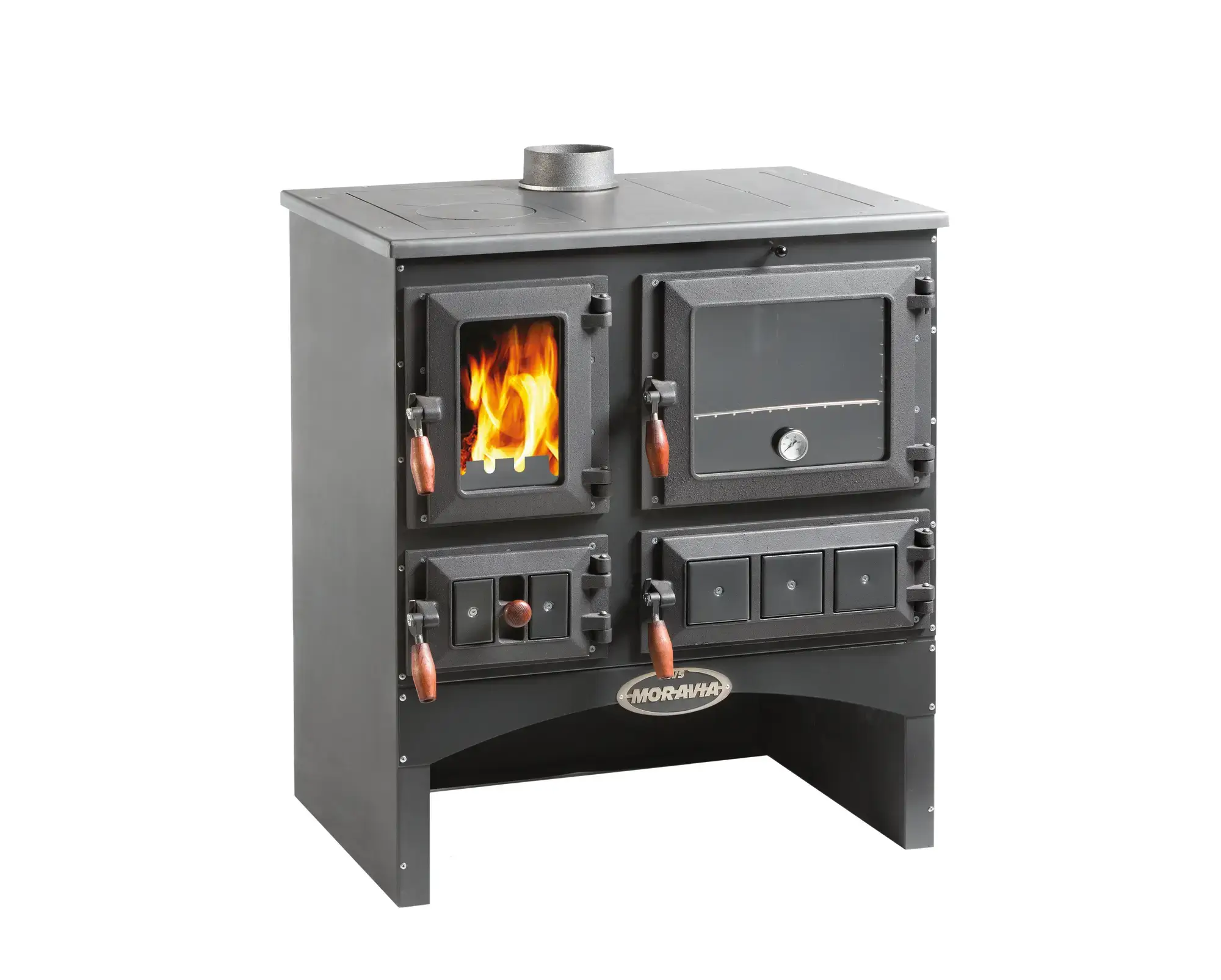 Sporák na tuhé palivo s rúrou KVS MORAVIA typ 9170 Oliver je určený na vykurovanie, varenie, pečenie a ohrievanie jedál. Ohnisko umožňuje používanie drevených polien s dĺžkou do 340 mm a priemerom do 160 mm.