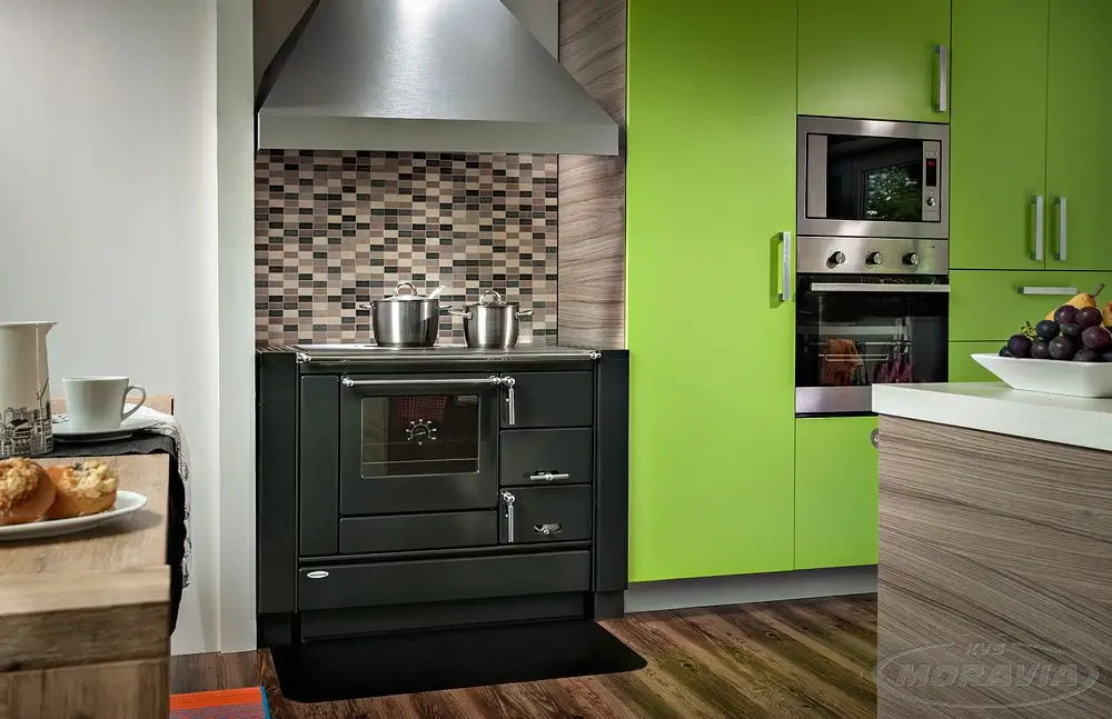 - Moderný dizajn umožňujúci umiestnenie sporáka napríklad do kuchynskej linky