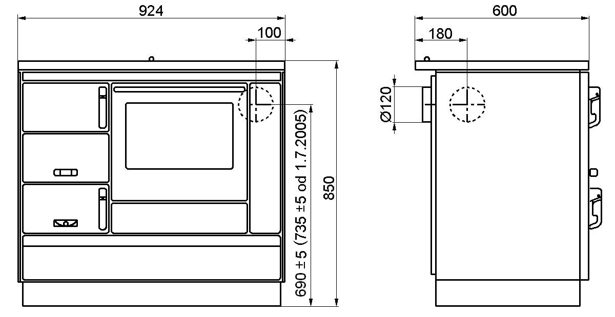 Sporák s rúrou na tuhé palivo TYP 9100