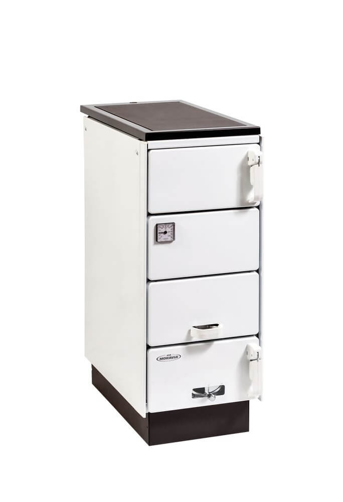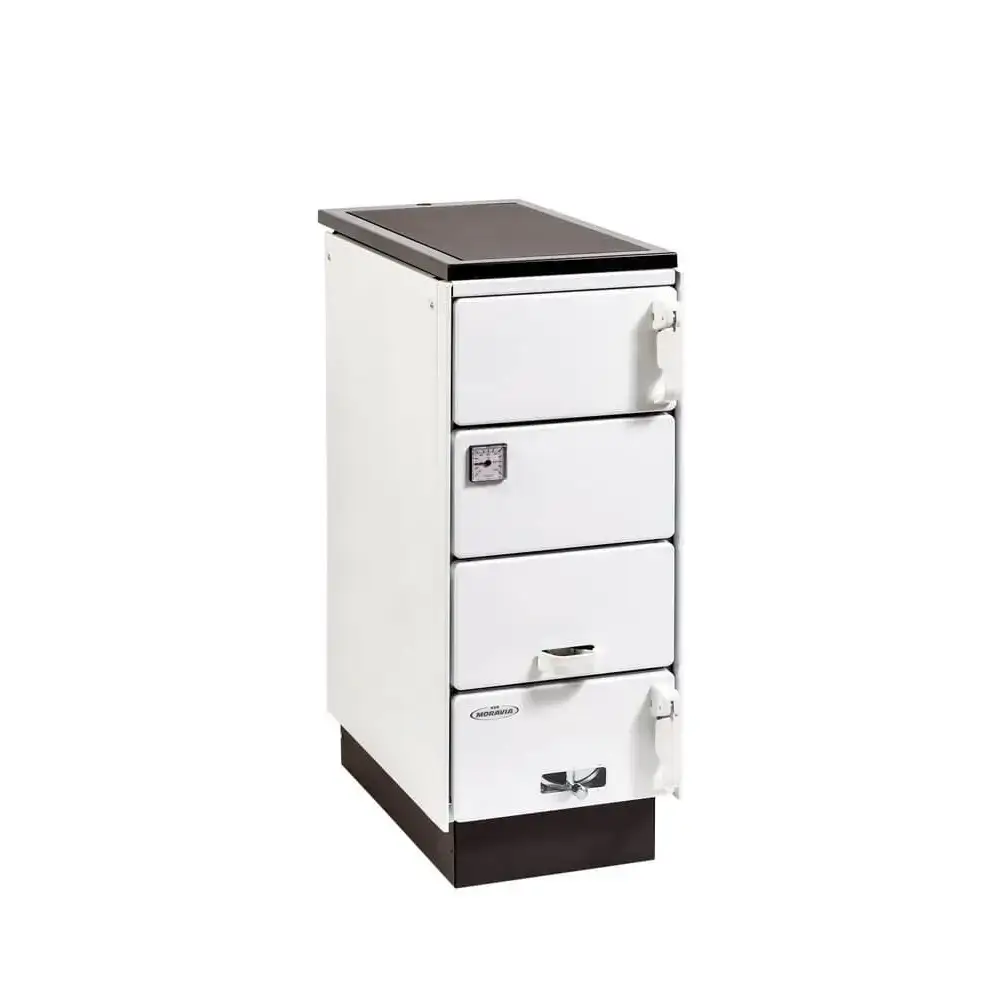 Sporák na tuhé palivo s rúrou KVS MORAVIA typ 9180 Ofélie je určený na vykurovanie, varenie, pečenie a ohrievanie jedál. Ohnisko umožňuje používať drevené polená s dĺžkou do 340 mm a priemerom do 160 mm. Sporák má v štandardnom prevedení dva vývody spalín na pripojenie ku komínu – zo zadnej steny alebo z platne; sú umiestnené symetricky v strede sporáka, takže nie je potrebné riešiť ľavú alebo pravú variantu. Sporák Ofélie ocenia tí, ktorí nemajú dostatok priestoru na veľký spotrebič. Ideálne je umiestniť ho do voľného priestoru, pretože sálavé teplo sa šíri všetkými smermi, najviac však spredu a platňou. Dizajnovým prvkom sú keramické kachle, ktoré oživujú vzhľad a zároveň plnia akumulačnú funkciu – počas kúrenia sa nahrejú a ešte nejaký čas po vyhasnutí odovzdávajú teplo do priestoru.