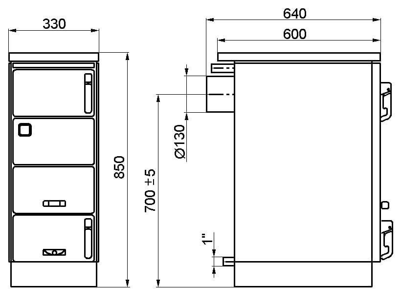 - Napojenie na komín len zo zadnej steny (130 mm)